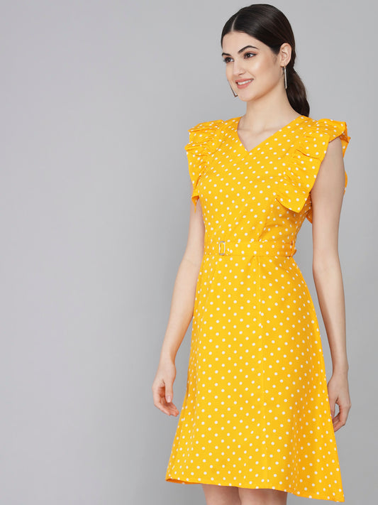 Polka Dot Print Mini Dress with Ruffle Sleeves and V-Neck