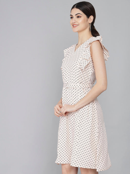 Polka Dot Print Mini Dress with Ruffle Sleeves and V-Neck