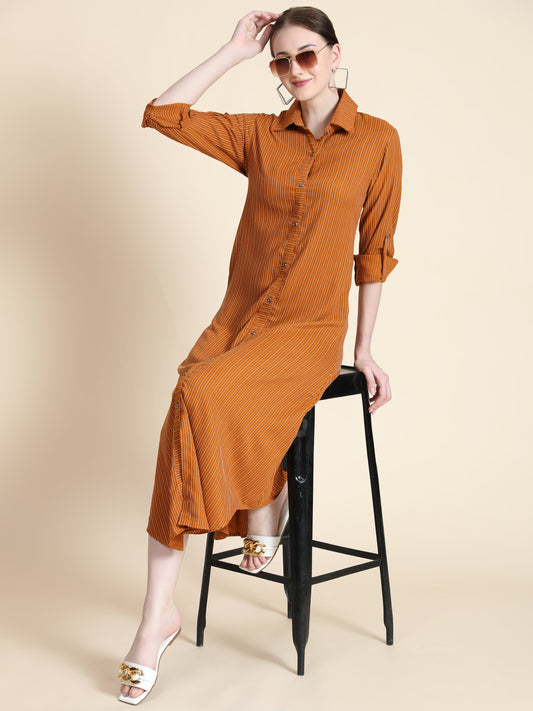 Rust Orange Striped Shirt Dress – Effortless Casual Elegance
